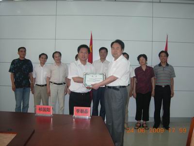 公司聘请祁国阳经理为公司卫生事业管理学兼职教授,李朝品副经理为祁国阳经理颁发了聘用证书。