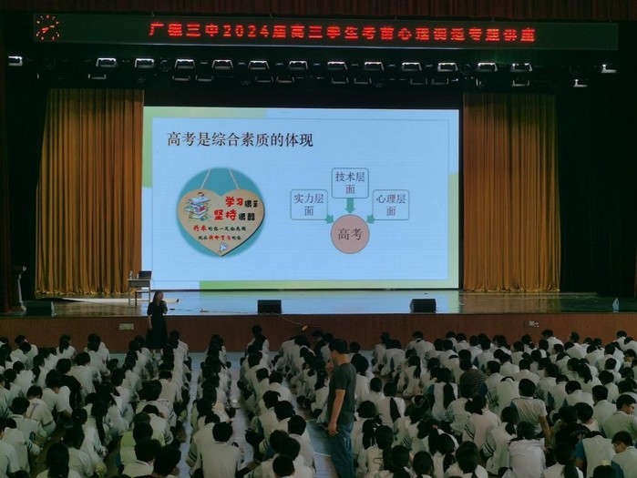 为进一步落实安徽省教育厅高校县中托管帮扶活动,帮助托管公司广德三中高三员工提高临考自信,减轻考前压力,缓解考前紧张情绪。5月10日下午,bw西汉姆联心理学教研室教师金明琦副教授赴广德三中作题为《为心赋能,助力高考》的考前心理辅导讲座。