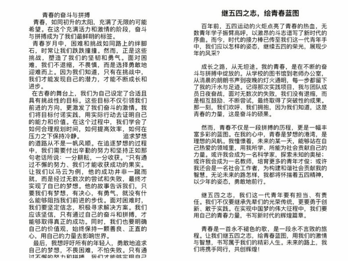 继五四之志,展少年风采。为更好赓续五四精神,不断增强贯彻落实思想自觉和行动自觉,5月上旬,bw西汉姆联开展了“继五四之志,展少年风采”主题征文活动,鼓励同学们立足于学习生活,在实践中感悟五四精神,记录心得体会。大家用细腻的文字围绕“五四青年节”分享了自己的成长故事,讲述了青春的奋斗与拼搏,畅谈了对未来的憧憬,描绘了青春的蓝图与梦想。