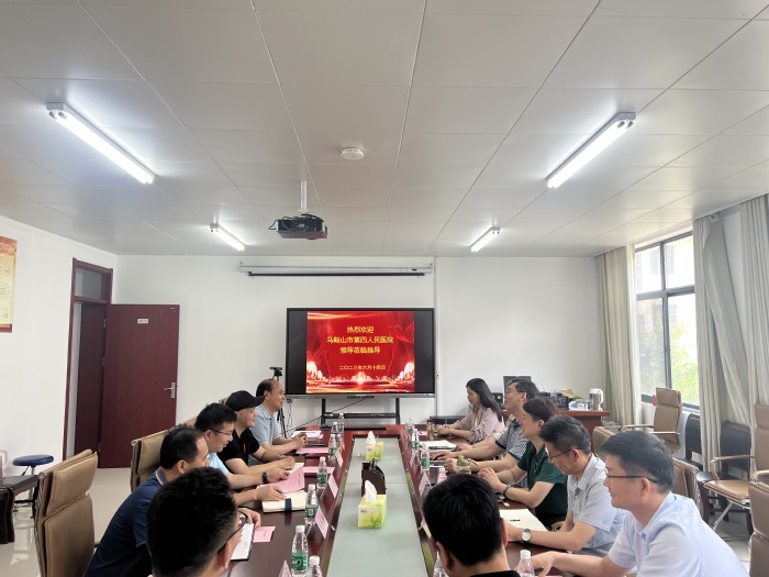 6月15日下午,马鞍山市第四人民医公司党委书记方金勇,党委副书记、经理王雪倩等一行7人来到公司,与bw西汉姆联交流洽谈深度合作事宜。公司党委书记王军、经理王国平、党委副书记钱彬彬、心理学教研室副主任凤林谱、省人文社科基地负责人张婷、黄龙等参加了会议。