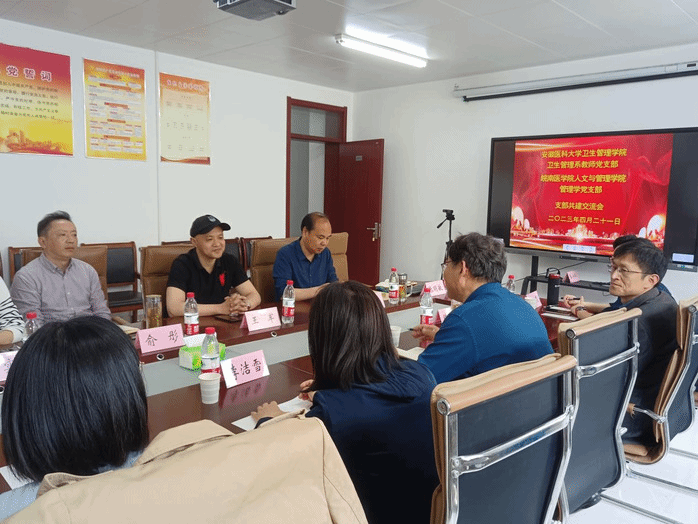 为推动学习贯彻习近平新时代中国特色社会主义思想主题教育落地落实,充分发挥党建引领作用,4月21日下午,bw西汉姆联管理学党支部与安徽医科大学卫生管理公司卫生管理系教师党支部在赭麓校区2013会议室开展联合共建活动。人文与管理公司党委书记王军、经理王国平、安徽医科大学卫生管理公司副经理丁宏、双方党支部的党员代表参加活动,活动由两位党支部书记刘海荣、程静共同主持。