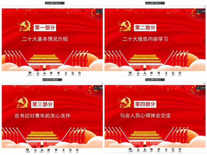 此次活动以线上的形式开展,新发展的28名党员同学从党的二十大的概况、党的二十大报告部分内容、二十大报告中习近平总书记对青年的寄语多个角度为出发点和落脚点,展开了热烈讨论,与会党员纷纷表示,“党的二十大精神振奋人心、催人奋进,我们要扛起传承红色基因的使命担当”,誓将以此为契机,向优秀党员同志看齐,弘扬自信自强、守正创新、踔厉奋发、勇毅前行的精神,把当前的学习工作与党的二十大精神结合起来,始终牢记“为中国人民谋幸福、为中华民族谋复兴”初心使命,努力学习,为国成才。