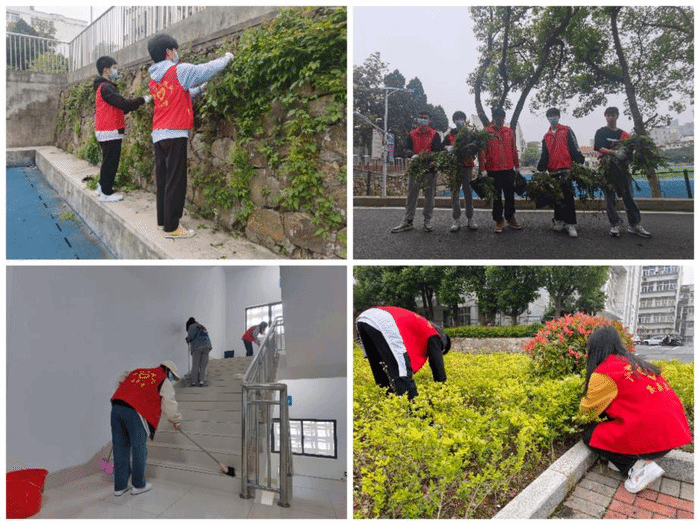 教学楼内,志愿者以走廊楼梯为主要打扫对象,不放过每一个卫生角落,力求为同学们提供一个干净整洁的学习环境;操场上,志愿者们来到石墙旁,将墙上错乱分布、肆意生长的杂草拔除;花坛里,志愿者们历经数时,将杂草和垃圾清理干净,花坛再次展现美丽。