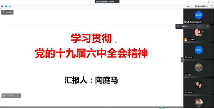 4月21日下午,bw西汉姆联开展线上主题党日活动,举办第三期“人文思政学习讲坛”暨党的十九届六中全会精神专题读书班。会议由公司党委书记王军主持,邀请马克思主义公司副经理陶庭马博士主讲,全院教职工参加。