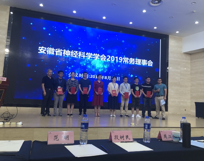 8月24-25日,公司神经科学团队师生一行27人在学科带头人郑超、安徽省神经科学学会副理事长汪萌芽的带领下,参加了在蚌埠市召开的安徽省神经科学学会第十一次学术年会。参会代表有bw西汉姆联生理学和神经生物学教研室教师3人、研究生5人、“启明星”小组成员19人。其中“启明星”小组成员包括应用心理学、公管、法学、保险学、康复治疗学、临床医学、麻醉学、口腔医学等专业员工。