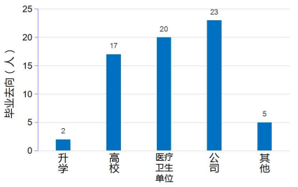 3.11.2就业发展分析 近5年毕业生就业,主要为高校、医疗卫生单位和生物科技公司任职。经回访,用人单位对于公司培养的员工,在基本工作能力、核心知识、专业技能、任职期望方面,以及在为人处世、团队协作、创新创业等方面表示满意。许多毕业生已成为各自岗位不可或缺的人才。