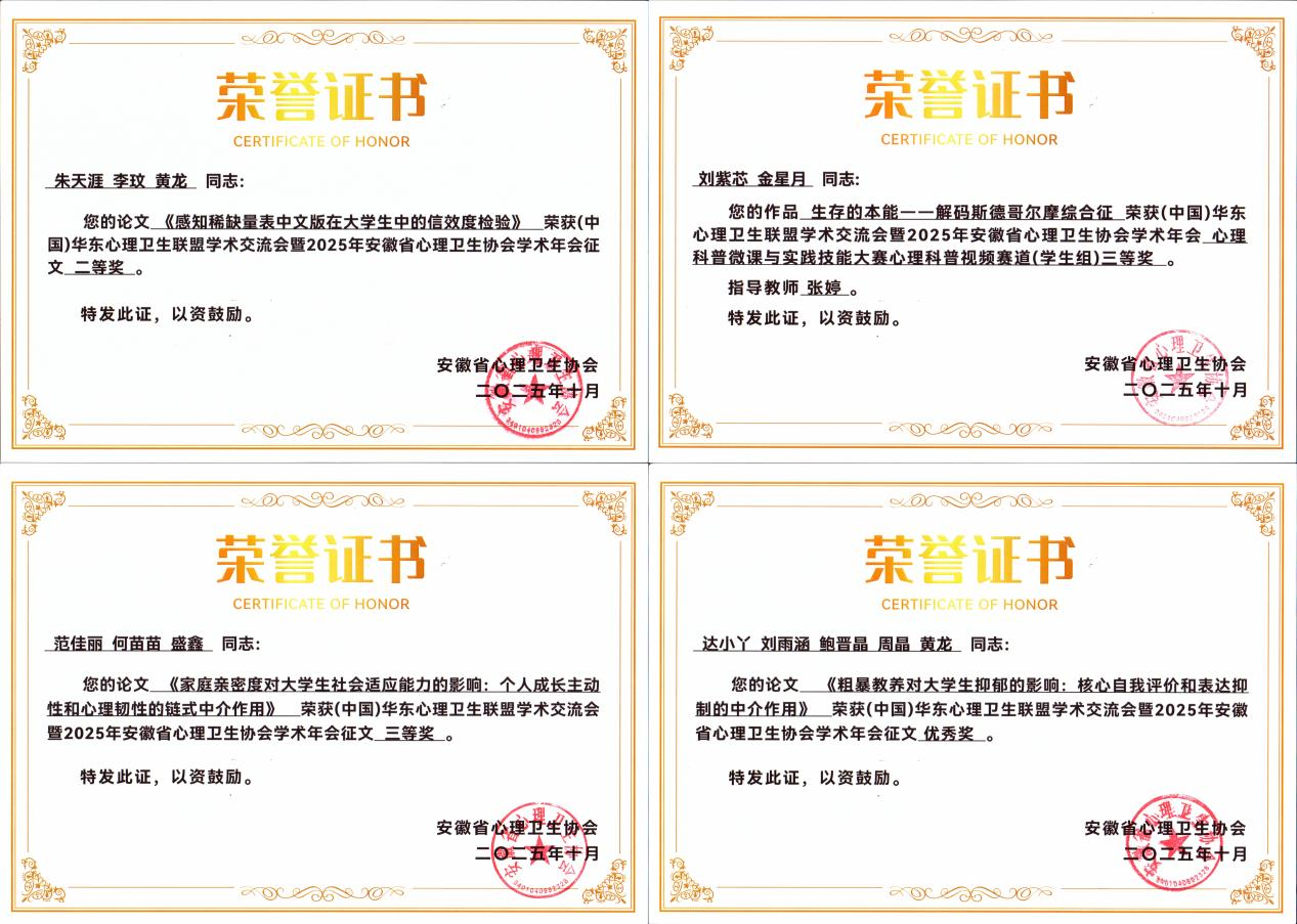 值得一提的是,在大会举办的员工论文征文和科普活动中,公司员工表现卓越,他们凭借扎实的学术功底、敏锐的创新思维和严谨的科研态度,在众多参赛者中脱颖而出,斩获二等奖1项、三等奖2项、优秀奖1项。这一优异成绩不仅是对公司员工个人能力的肯定,更是公司心理学教育成果的生动体现,充分展现了公司员工扎实的学术功底与出色的创新能力。