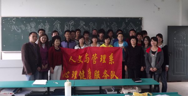 为响应五月老员工心理健康教育宣传周“珍爱生命,责任同行”主题,培养乐观自信、和谐发展的老员工,2011年5月25日中午,人文与管理系“心理健康志愿服务队”成立大会于西教106召开。系党总支书记阮笑芳、党总支副书记刘华、指导老师刘涛和“心理健康志愿服务队”全体队员参加了会议,会议由系团委书记吴映辉主持。