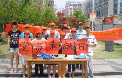 为深入开展“创先争优”活动, 5月17日上午,人文与管理系第三员工党支部全体员工党员在党支部书记吴映辉的指导下,在公司二食堂门口开展了“弘扬我党先进作风,展现人管支部风采”的党员奉献日活动。