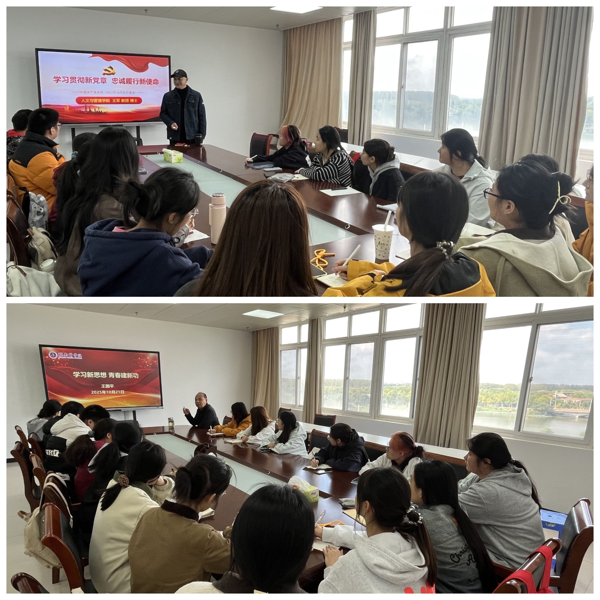 王军和公司党委副书记、经理王国平分别作专题党课。王军以《学习贯彻新党章 忠诚履行新使命》为题,围绕“习近平总书记关于党章的重要论述”“党章的历次制定及修订”“党的二十大党章的重要修改”等内容,系统阐释了党章的精神实质与时代内涵,引导学员以党章为镜锤炼党性,自觉向党员标准看齐、向党组织靠拢。王国平在《学习新思想 青春建新功》专题授课中,系统梳理了中国共产党的中心任务、建设社会主义现代化强国的战略安排等内容,深入解读新时代青年的责任与使命,强调我们学习、工作的根本立足点是为人民服务,激励全体学员坚定理想信念,勇担时代重任。