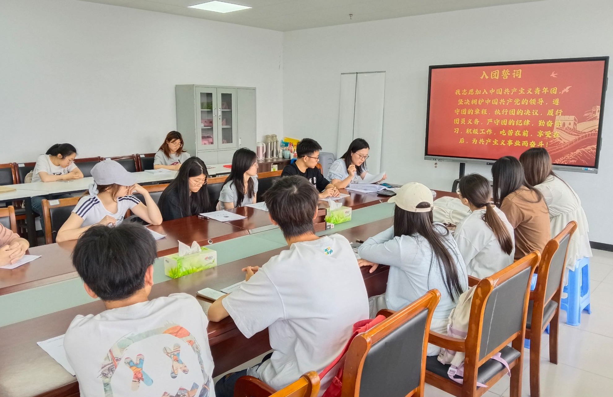 团徽映照青春志 ,誓言激扬奋斗情。新发展团员入团仪式在庄严的国歌声中拉开帷幕。15名新团员共同宣读入团誓词,以青春之名立下“请党放心”的庄严承诺。新发展团员代表在发言中郑重承诺:”将以团员标准丈量成长步伐,用实干担当诠释青春价值。”张露在交流中表示,希望新发展团员们要永葆政治本色,在理论学习中筑牢信仰之基,在躬身实践中彰显先锋力量。