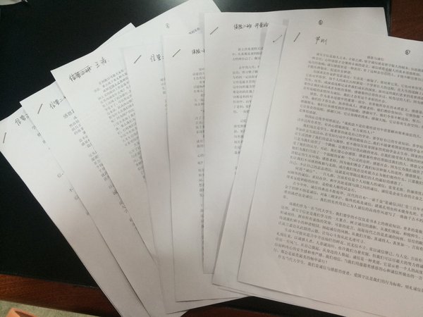 书写主题文章,论感恩之意 2014年4月底至5月初,2013级各班同学围绕“诚信立身”、“知恩图报”等主题,开展了感恩诚信主题征文活动,同学们踊跃投稿,将自己的亲身经历和所想所感,身边感人的事迹,以及对感恩诚信的深刻理解,都付诸笔尖,经过严格的评选,5篇征文被推荐到公司参加评比。