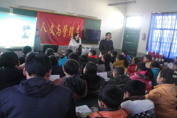 随后,志愿者们还给孩子们介绍了许多关于雷锋同志的生平事迹。留守儿童徐景浩感激地说:“谢谢志愿者哥哥姐姐们为我们送图书和文具,我们一定好好学习,天天向上。”志愿者许鹏这样评价他们的志愿行为,他说:“我们用爱心牵起希望的小手,希望能够用行动呼吁更多的人来关爱留守儿童。”