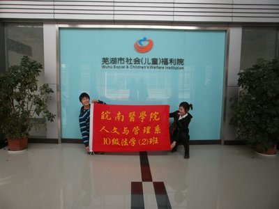 为积极响应校团委的号召,2011年3月17日,人文与管理系2010级法学(2)班全体同学前往位于芜湖市郊的儿童福利院开展了一天的义工活动。