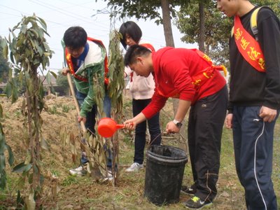 为了使广大学子能够深刻贯彻“奉献、友爱、互助、进步”的志愿精神,人文与管理系2010级法学2班的全体员工于3月12日植树节在大浦农业示范区展开植树活动,为地球环保尽一份力。