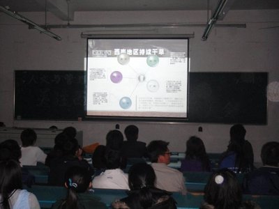 同学们首先观看了由员工会特别制作的关于西南旱灾旱情的PPT,经现场解说,对西南旱情有了更加深刻的了解。PPT放映结束之后,全体同学们纷纷拿出手机按照提示通过手机短信捐助的方式向西南灾区进行了募捐。