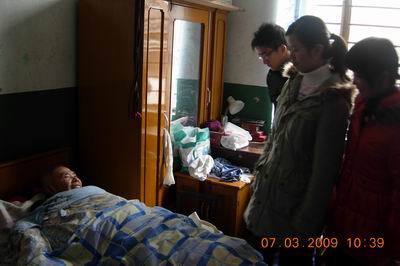 活动初,志愿者就分工明确,各值其职。志愿者一部分留守在爱心驿站,重新整理文件档案,同时两名志愿者设计黑板报,就“春季如何预防感冒”做了专栏。另一部分志愿者拜访残疾人,他们先后走进周福年,吴贤德老人的家中,送上水果,真诚问候,帮助他们做一些力所能及的事情,洗脸梳头、做家务、帮助他们锻炼身体、陪他们散步、聊天。看到老人幸福的笑颜,志愿者也体味着收获的喜悦和付出的意义。