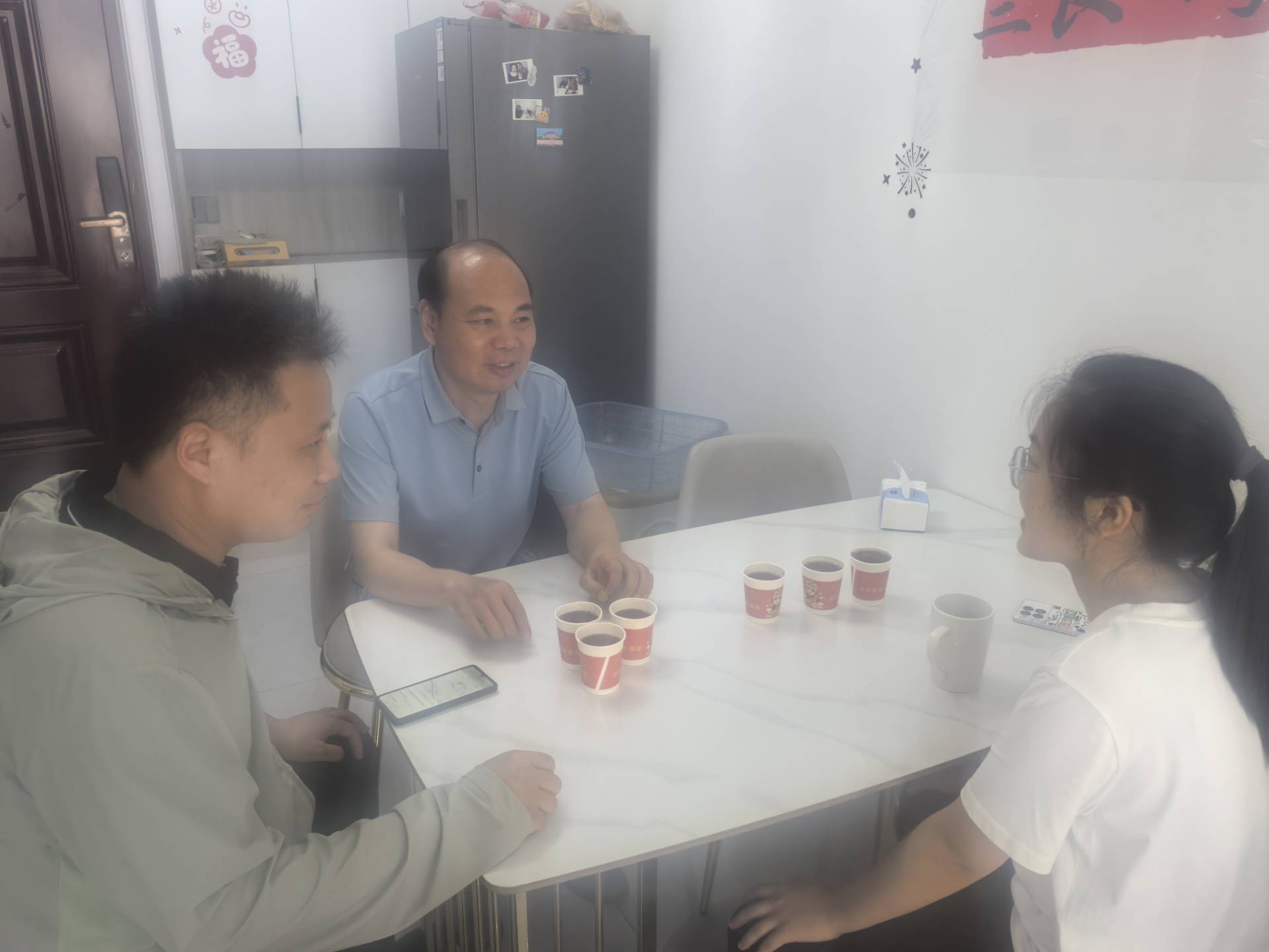 无为市夏日炎炎,蝉鸣渐稠。团队成员与员工及家长促膝长谈,仔细询问家庭经济来源、家庭成员健康状况及生活实际困难,认真倾听家长对员工成长的期望。辅导员张露用通俗易懂的语言向家长和员工详细解读了国家助学金、助学贷款、勤工助学、临时困难补助等多项资助政策,重点介绍了公司"奖、贷、助、补、免"五位一体的资助体系。